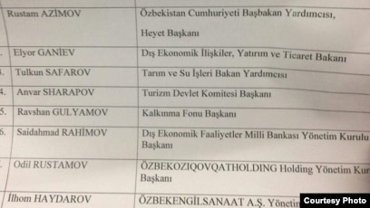 “Сешанба куни томонлар қатор меморандумларга қўл қўйишди. Ўнга яқин соҳада таклиф этилган инвестицион лойиҳалар қиммати қарийб 1 миллиард долларга боради. Булар орасида “Дори-дармон”¸ “Ўзкимëсаноат”¸ “Ўзфармсаноат”¸ “Ўзбекенгилсаноат” ҳолдинглари¸Туризмни ривожлантириш давлат қўмитаси имзолаган алоҳида ҳужжатлар бор. Бу меморандумлар¸ содда қилиб айтганда¸ Ўзбекистондаги инвестиция имконларини ўрганиб чиқиб¸ катта лойиҳаларни ҳамкорликда амалга ошириш ҳақидадир”¸ деди “Озодлик” радиоси билан суҳбатлашган мулозим.