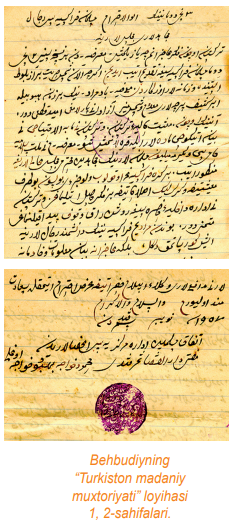 Behbudiy tomonidan 1907-yil noyabr oyida Dumaga yuborilgan “Turkiston madaniy muxtoriyati” loyihasi 2001-yilgacha topilmagan edi. Bu noyob tarixiy loyiha asl qo‘l yozma nusxasining topilishigacha bo‘lgan sarguzashti juda qiziq.